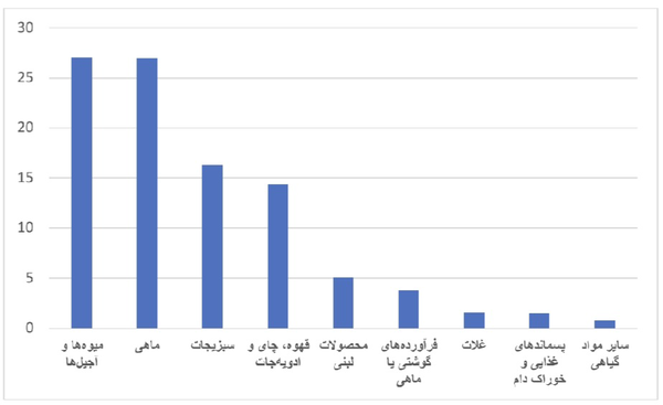 نمودار ۱۰ کالای اصلی صادراتی یمن به عربستان در سال ۲۰۲۳ (میلیون دلار)